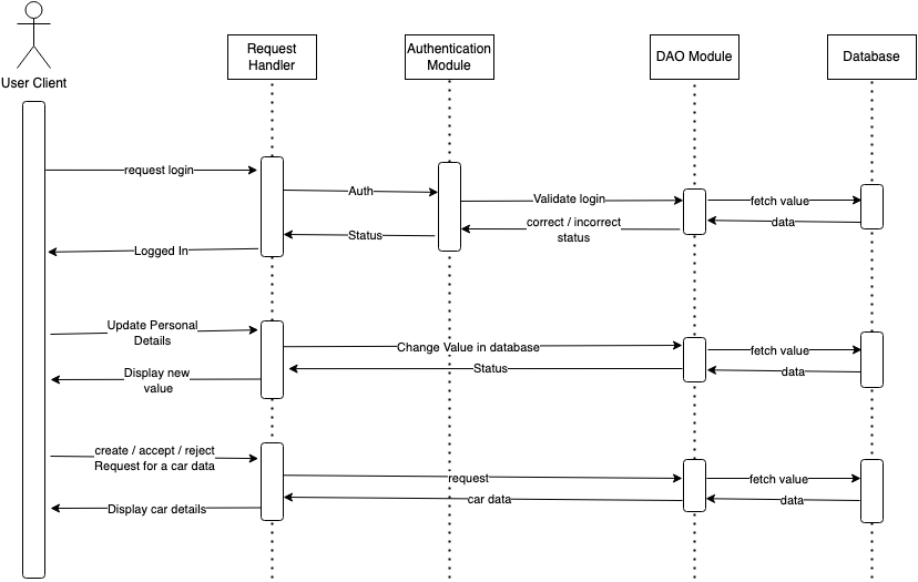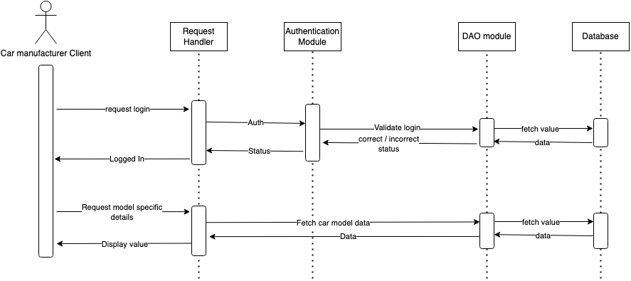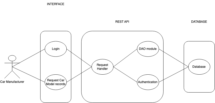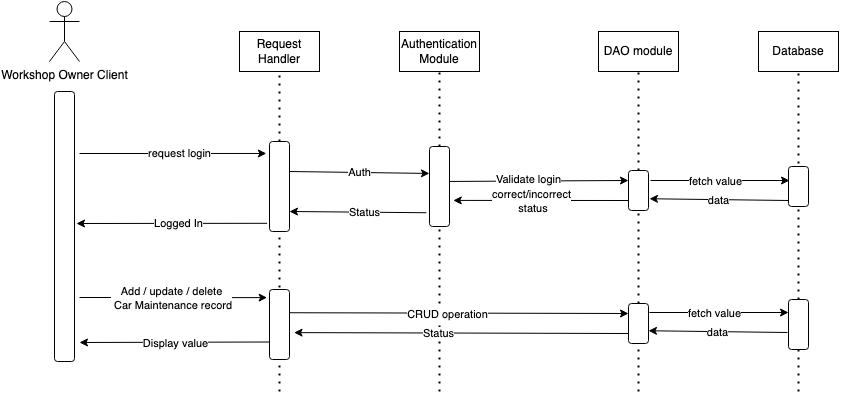 The Car Service Record Management System is a system that is dedicated to users who want to get the details of the car that they want to buy, insurance companies that want to decide the insurance premium that they can charge, so they can decide that based on the data that they can get from the report of the car. Workshop owners can get the details of the part that is related to the car so they can fix that with ease as they have all the history of the car. Also, with the help of the data, factory owners can decide which particular part is in demand so they can produce that more and whichever part is in less demand, they can produce less. The system has 4 modules, i.e., the Request handler module, Authentication module, DAO module, and database module, which will handle different queries and output the appropriate results. The architecture that we followed for this project is layered architecture. A layered architecture will give us flexibility, maintainability, and scalability for the application and will provide easy reuse of the components. With the help of layered architecture, it's easy to keep these logical levels and parts focused on different things.