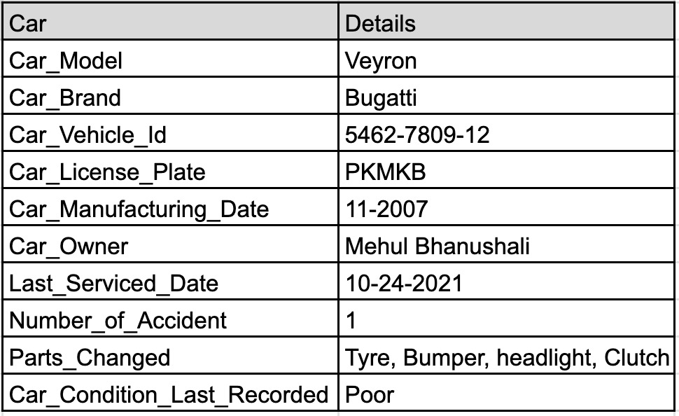- Priyanshi is an analyst that works for a company that specializes in insurance. Every day, as part of her job, she looks at the condition of a car to figure out how much the insurance premium will be. To figure out how much insurance will cost, she has to think about more than thirty things, like the car's make, model, and year, as well as its previous owners, any accidents, any extra features, and any damage to the body. The problem is that she has to get all of the information by hand from a number of different third-party vendors and repair shops. Also, some data is missing from different places, and the format of the data varies from one vendor to another. Now, what she needs is a system with a central database that lets her just type in the license plate number of the car and see all the information from the database on the screen.